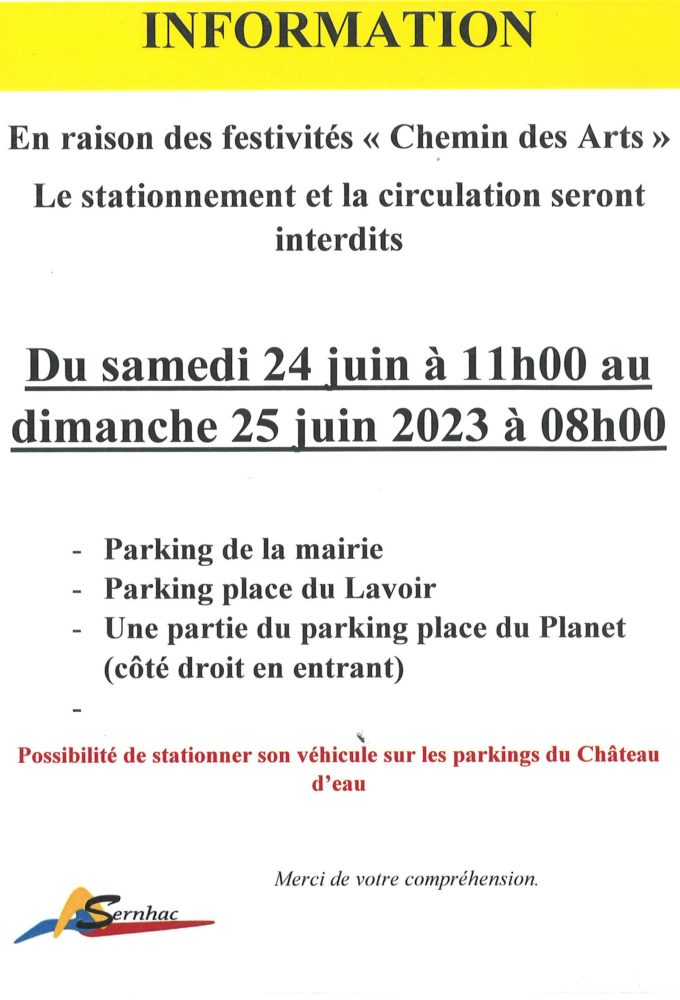[ ‼️ Circulation et stationnement samedi 24 juin : Chemin des Arts ]