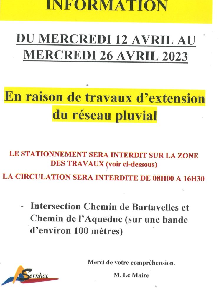 Arrêté municipal Catégories : Actualités, Travaux6 avril 2023Navigation articlePrécédent Article précédent :Ecole élémentaire : Etude du soirSuivantArticle suivant :🚧 ❗️ Stationnement parking marché couvert (chemin de la Cave) : travaux du lundi 17/04/23 au 17/10/23Articles similairesInformation stationnement salle polyvalente samedi 6 & dimanche 7 décembre1 décembre 2025🚧 Circulation travaux D986L1 décembre 2025Passage des éboueurs pour présentation des calendriers 202613 novembre 2025Place disponible en miro-crèche les mercredis13 novembre 2025Avis de Consultation publique SNCF Rive droite du Rhône12 novembre 2025Enquête publique communale lieu-dit la Soubeyranne4 novembre 2025