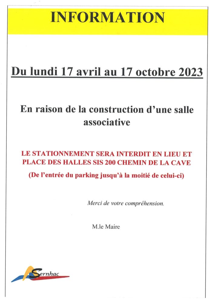 ArrĂŞtĂ© municipal CatĂ©gories : ActualitĂ©s, Travaux7 avril 2023Navigation articlePrĂ©cĂ©dent Article prĂ©cĂ©dent :đźš§ Circulation et stationnement intersection chemin des Bartavelles / chemin de l’Aqueduc : travaux du mercredi 12/04 au mercredi 26/04 2023SuivantArticle suivant :đźš§ ❗️ Circulation et stationnement rue du Puits d’Agathe : travaux du lundi 17/04/23 au vendredi 28/04/23Articles similairesInformation stationnement salle polyvalente samedi 6 & dimanche 7 dĂ©cembre1 dĂ©cembre 2025đźš§ Circulation travaux D986L1 dĂ©cembre 2025Passage des Ă©boueurs pour prĂ©sentation des calendriers 202613 novembre 2025Place disponible en miro-crèche les mercredis13 novembre 2025Avis de Consultation publique SNCF Rive droite du RhĂ´ne12 novembre 2025EnquĂŞte publique communale lieu-dit la Soubeyranne4 novembre 2025