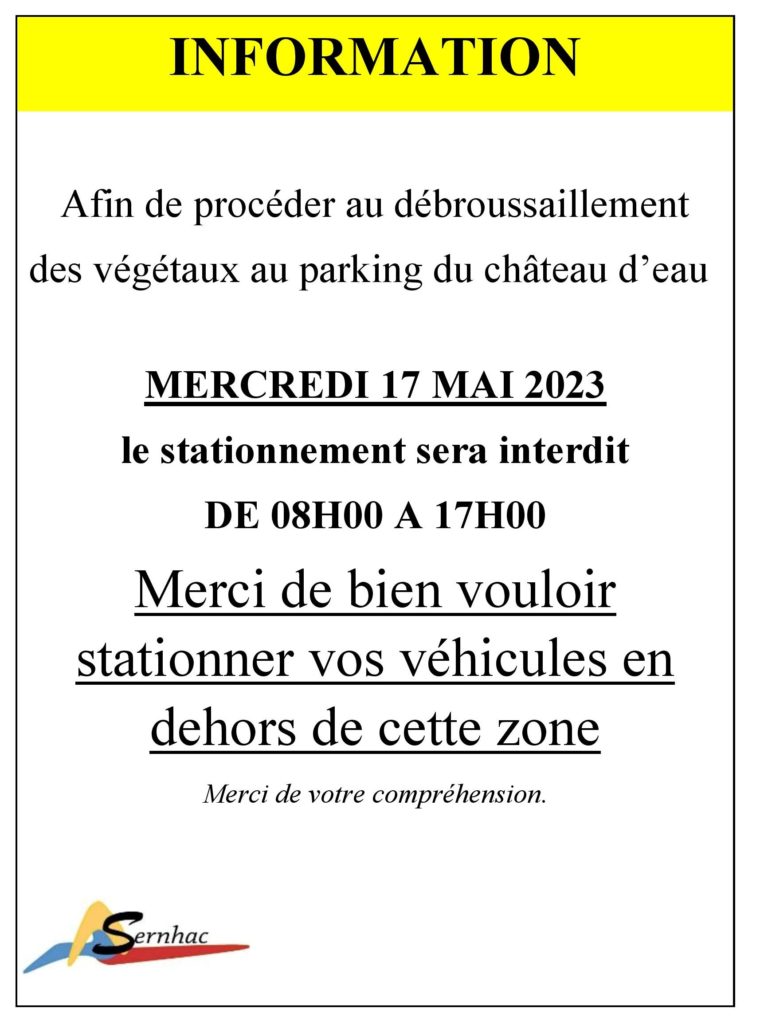 Arrêté municipal Catégories : Actualités, Travaux11 mai 2023Navigation articlePrécédent Article précédent :Conseil municipal le 16.05.23SuivantArticle suivant :♻️🖲🚮Action écocitoyenne à Sernhac : association Des Pousses et des PierresArticles similaires🅿️⛔ Information stationnement et circulation du samedi 6 décembre au lundi 8 décembre 🚗5 décembre 2025🅿️⛔ Information stationnement et circulation du samedi 6 décembre 🚗5 décembre 2025Information stationnement salle polyvalente samedi 6 & dimanche 7 décembre1 décembre 2025🚧 Circulation travaux D986L1 décembre 2025Passage des éboueurs pour présentation des calendriers 202613 novembre 2025Place disponible en miro-crèche les mercredis13 novembre 2025