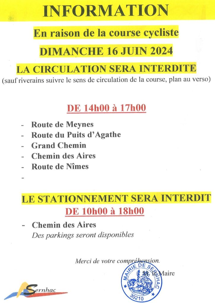 Dimanche 16 juin 2024 ArrĂŞtĂ© municipal CatĂ©gorie : ActualitĂ©s6 juin 2024Navigation articlePrĂ©cĂ©dent Article prĂ©cĂ©dent :Rencontres de la Formation et de l’Emploi 19 Juin 2024SuivantArticle suivant :Taux de nitrate 53mg/lArticles similaires🅿️⛔ Information stationnement et circulation du samedi 6 dĂ©cembre au lundi 8 dĂ©cembre đźš—5 dĂ©cembre 2025🅿️⛔ Information stationnement et circulation du samedi 6 dĂ©cembre đźš—5 dĂ©cembre 2025Information stationnement salle polyvalente samedi 6 & dimanche 7 dĂ©cembre1 dĂ©cembre 2025đźš§ Circulation travaux D986L1 dĂ©cembre 2025Passage des Ă©boueurs pour prĂ©sentation des calendriers 202613 novembre 2025Place disponible en miro-crèche les mercredis13 novembre 2025