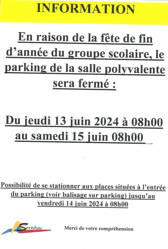 Du jeudi 13 juin 2024 au samedi 15 juin 2024 ArrĂŞtĂ© municipal CatĂ©gorie : ActualitĂ©s10 juin 2024Navigation articlePrĂ©cĂ©dent Article prĂ©cĂ©dent :Alerte nitrates – Restriction d’usage AEPSuivantArticle suivant :TRANSPORT SCOLAIRE RÉGIONAL : Inscriptions ouvertes du 10 juin au 31 juillet 2024Articles similaires🅿️⛔ Information stationnement et circulation du samedi 6 dĂ©cembre au lundi 8 dĂ©cembre đźš—5 dĂ©cembre 2025🅿️⛔ Information stationnement et circulation du samedi 6 dĂ©cembre đźš—5 dĂ©cembre 2025Information stationnement salle polyvalente samedi 6 & dimanche 7 dĂ©cembre1 dĂ©cembre 2025đźš§ Circulation travaux D986L1 dĂ©cembre 2025Passage des Ă©boueurs pour prĂ©sentation des calendriers 202613 novembre 2025Place disponible en miro-crèche les mercredis13 novembre 2025
