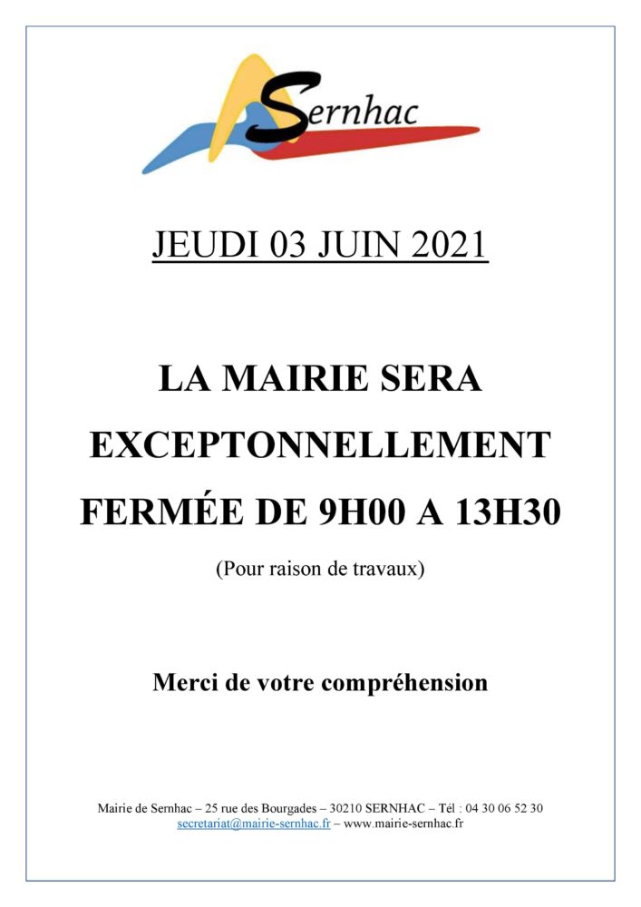 Catégorie : Actualités2 juin 2021Navigation articlePrécédent Article précédent :1er juin – COMMUNICATION – Consultation des arrêtés de restriction de l’eauSuivantArticle suivant :07 juin – COMMUNICATION – Collecte du 14 juilletArticles similairesInformation stationnement salle polyvalente samedi 6 & dimanche 7 décembre1 décembre 2025🚧 Circulation travaux D986L1 décembre 2025Passage des éboueurs pour présentation des calendriers 202613 novembre 2025Place disponible en miro-crèche les mercredis13 novembre 2025Avis de Consultation publique SNCF Rive droite du Rhône12 novembre 2025Enquête publique communale lieu-dit la Soubeyranne4 novembre 2025