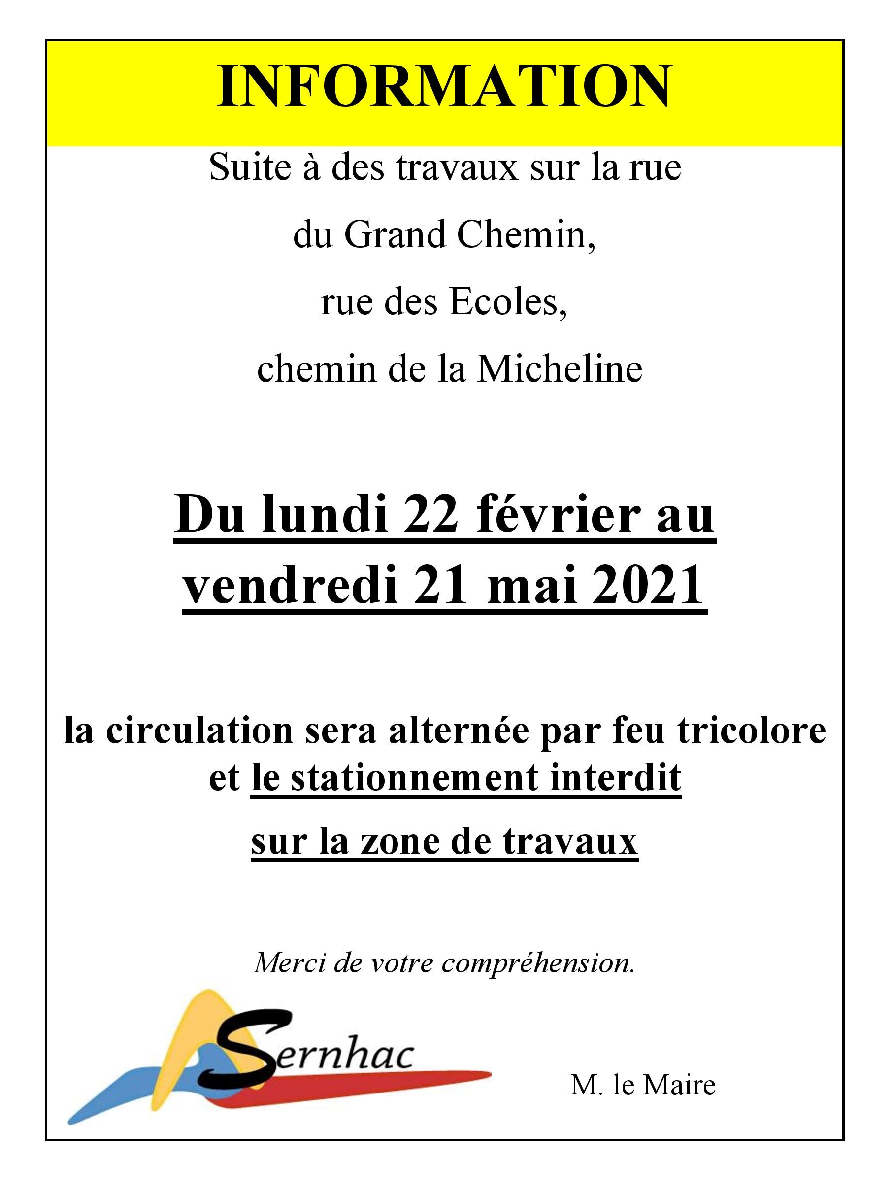 Catégories : Actualités, Travaux8 février 2021Navigation articlePrécédent Article précédent :08 février – COMMUNICATION – La poubelle des ordures ménagères : le dernier recours !SuivantArticle suivant :09 février – COMMUNICATION – Faites passer vos messages d’amour, d’espoir et de bonne humeur !Articles similairesInformation stationnement salle polyvalente samedi 6 & dimanche 7 décembre1 décembre 2025🚧 Circulation travaux D986L1 décembre 2025Passage des éboueurs pour présentation des calendriers 202613 novembre 2025Place disponible en miro-crèche les mercredis13 novembre 2025Avis de Consultation publique SNCF Rive droite du Rhône12 novembre 2025Enquête publique communale lieu-dit la Soubeyranne4 novembre 2025