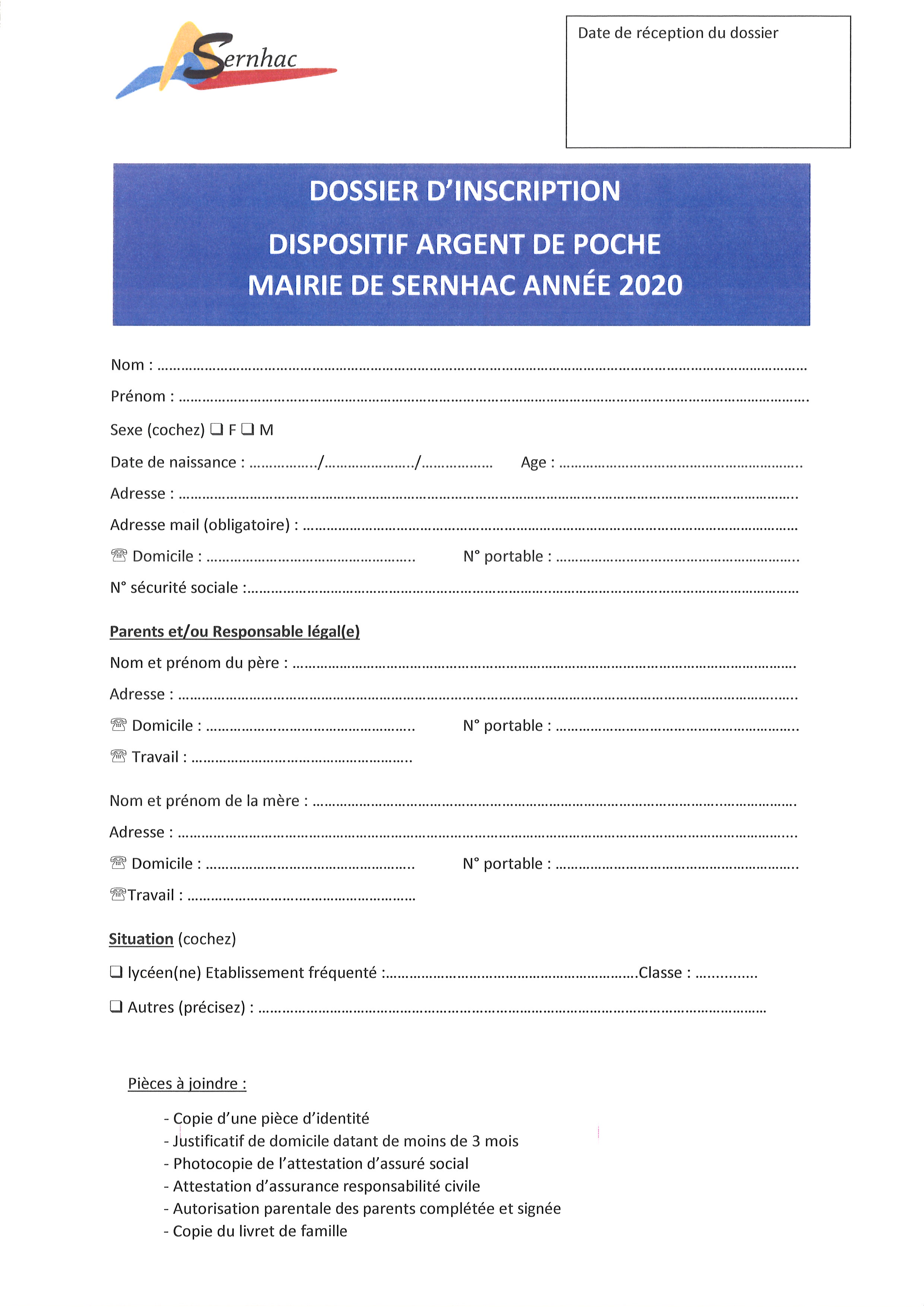 Pour s’inscrire, le dossier peut être téléchargé ci dessous, à retourner en Mairie avant le 31 juillet 2020.