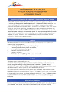 Ce dispositif d’adresse aux jeunes Sernhacois de 16 et 17 ans. il permet de vivre une première expérience professionnelle. En contrepartie de leurs investissements, ils percevront une indemnité forfaitaire de 20 euros par mission de 3h30. Ces missions seront proposées sur les périodes de vacances scolaires de juillet, août et Pâques.