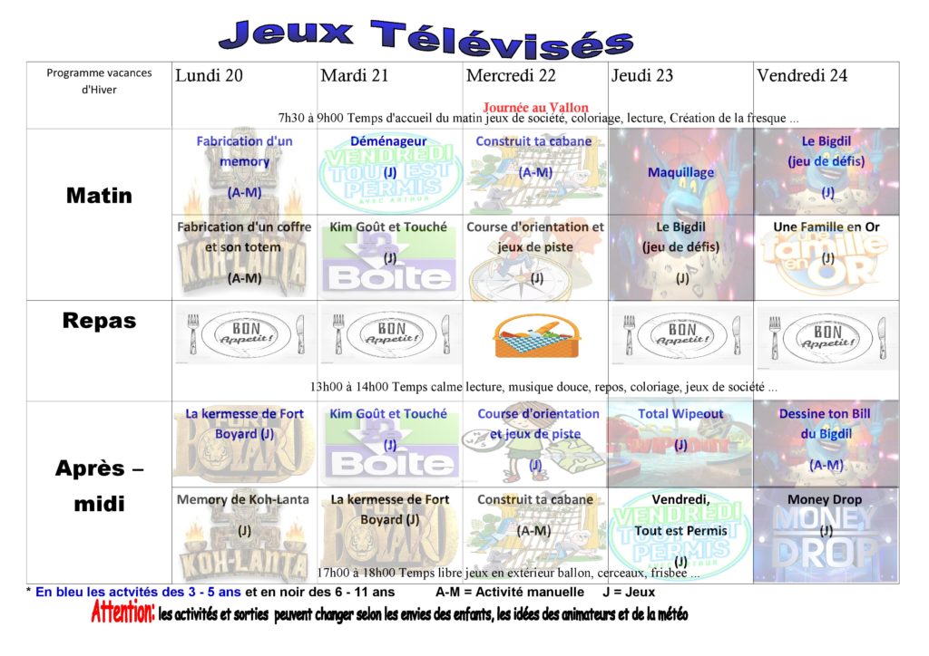 VACANCES D’HIVER : ouvert du 20 février au 24 février