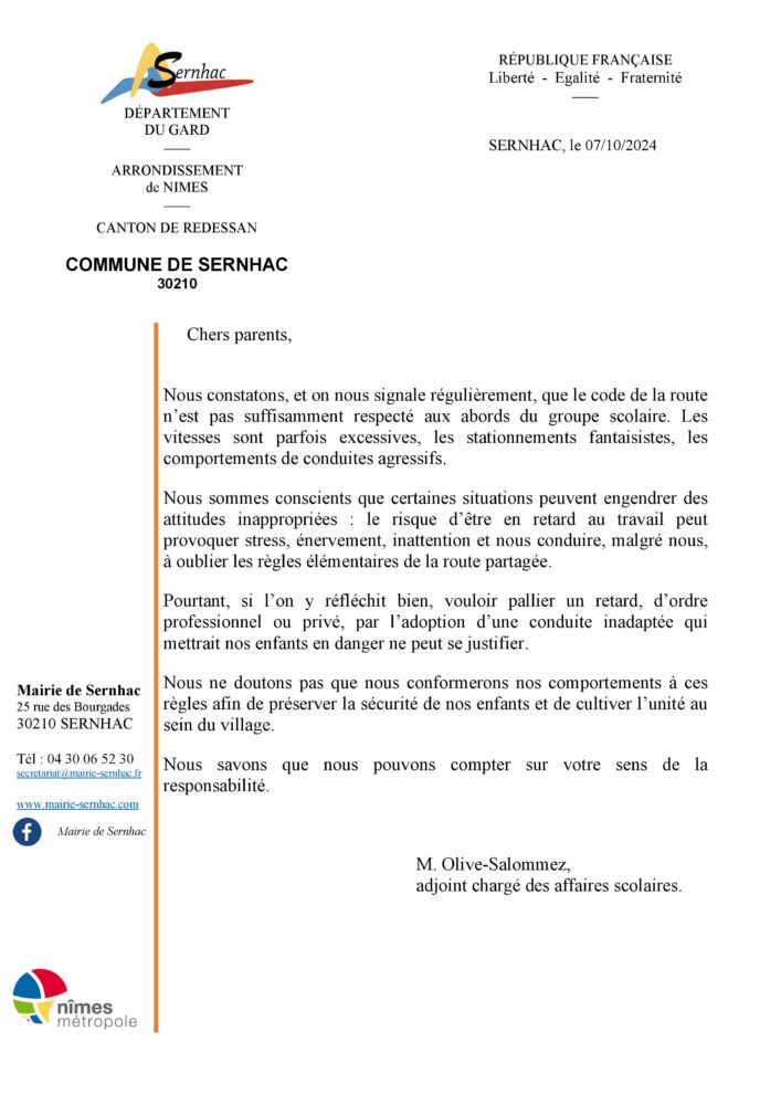 Catégorie : Actualités7 octobre 2024Navigation articlePrécédent Article précédent :« Séniors en vacances » 2025 organisés par l’UDCCAS du GardSuivantArticle suivant :La Poste fermée le mardi 08 octobreArticles similairesInformation stationnement salle polyvalente samedi 6 & dimanche 7 décembre1 décembre 2025🚧 Circulation travaux D986L1 décembre 2025Passage des éboueurs pour présentation des calendriers 202613 novembre 2025Place disponible en miro-crèche les mercredis13 novembre 2025Avis de Consultation publique SNCF Rive droite du Rhône12 novembre 2025Enquête publique communale lieu-dit la Soubeyranne4 novembre 2025