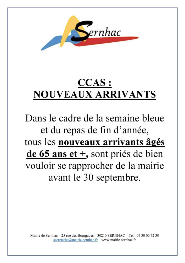 Catégorie : Actualités7 septembre 2021Navigation articlePrécédent Article précédent :Communication – Le marché de Sernhac fête ses 1 an !SuivantArticle suivant :Communication – Zones vulnérables à la pollutionArticles similaires🅿️⛔ Information stationnement et circulation du samedi 6 décembre au lundi 8 décembre 🚗5 décembre 2025🅿️⛔ Information stationnement et circulation du samedi 6 décembre 🚗5 décembre 2025Information stationnement salle polyvalente samedi 6 & dimanche 7 décembre1 décembre 2025🚧 Circulation travaux D986L1 décembre 2025Passage des éboueurs pour présentation des calendriers 202613 novembre 2025Place disponible en miro-crèche les mercredis13 novembre 2025