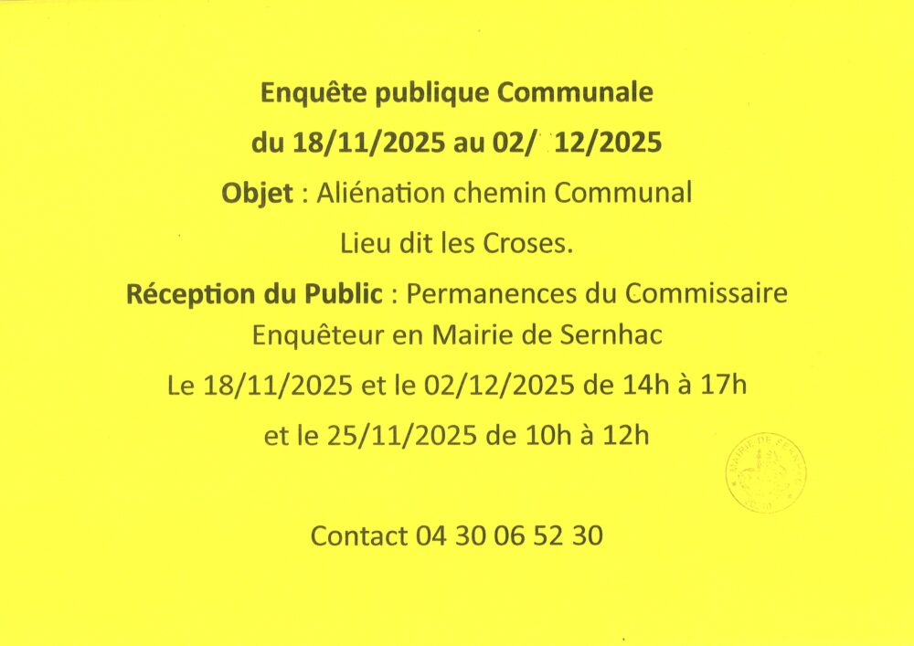 Catégorie : Actualités4 novembre 2025Navigation articlePrécédent Article précédent :Bureau de PosteSuivantArticle suivant :Enquête publique communale lieu-dit la SoubeyranneArticles similairesInformation stationnement salle polyvalente samedi 6 & dimanche 7 décembre1 décembre 2025🚧 Circulation travaux D986L1 décembre 2025Passage des éboueurs pour présentation des calendriers 202613 novembre 2025Place disponible en miro-crèche les mercredis13 novembre 2025Avis de Consultation publique SNCF Rive droite du Rhône12 novembre 2025Enquête publique communale lieu-dit la Soubeyranne4 novembre 2025