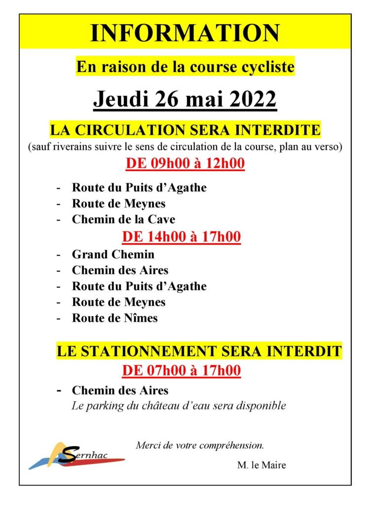 Catégorie : Actualités23 mai 2022Navigation articlePrécédent Article précédent :Fermeture mairie pont de l’AscensionSuivantArticle suivant :Plan Communal de Sauvegarde : Nous avons besoin de VOUS face aux risques qui NOUS concernent !Articles similaires🅿️⛔ Information stationnement et circulation du samedi 6 décembre au lundi 8 décembre 🚗5 décembre 2025🅿️⛔ Information stationnement et circulation du samedi 6 décembre 🚗5 décembre 2025Information stationnement salle polyvalente samedi 6 & dimanche 7 décembre1 décembre 2025🚧 Circulation travaux D986L1 décembre 2025Passage des éboueurs pour présentation des calendriers 202613 novembre 2025Place disponible en miro-crèche les mercredis13 novembre 2025