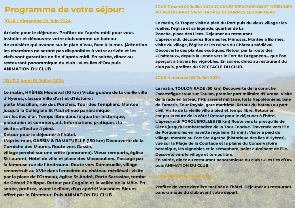 Du 30 Juin 2024 au 4 Juillet 2024
