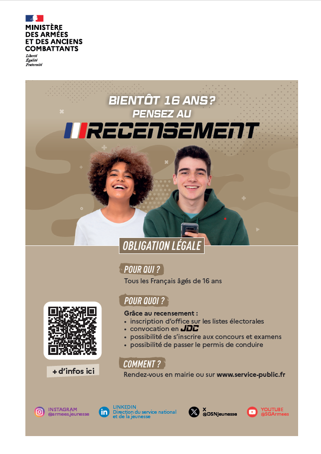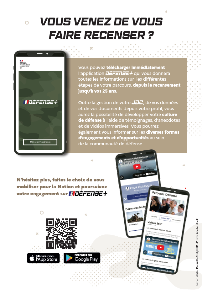 👉Vous pouvez télécharger immédiatement l’application qui vous donnera toutes les informations sur les différentes étapes de votre parcours, depuis le recensement jusqu’à vos 25 ans.