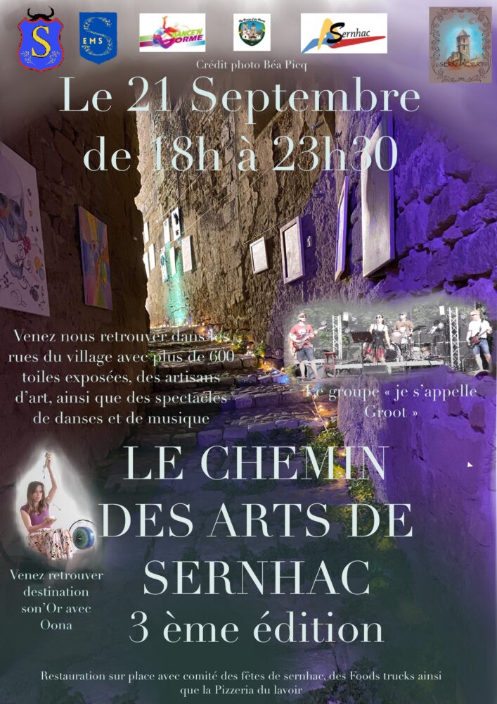 Samedi 21 septembre Venez nous retrouver dans les rues du villages avec plus de 600 toiles exposées, des artisans d’art, ainsi que des spectacles de danses et de musique. Le groupe « je s’appelle Groot » A découvrir « destination son’Or avec Oona Restauration sur place avec le comité des fêtes de Sernhac / FOOD TRUCKS / Pizzéria du Vieux Lavoir. Catégorie : Actualités11 septembre 2024Navigation articlePrécédent Article précédent :Journée défense et citoyennetéSuivantArticle suivant :Réunion publique sur le thème de la participation citoyenneArticles similairesInformation stationnement salle polyvalente samedi 6 & dimanche 7 décembre1 décembre 2025🚧 Circulation travaux D986L1 décembre 2025Passage des éboueurs pour présentation des calendriers 202613 novembre 2025Place disponible en miro-crèche les mercredis13 novembre 2025Avis de Consultation publique SNCF Rive droite du Rhône12 novembre 2025Enquête publique communale lieu-dit la Soubeyranne4 novembre 2025