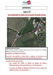 – La course de 18h25 au départ de Serhnac se fera à partir de 18h37 à l’arrêt « Ch. De Sernhac »