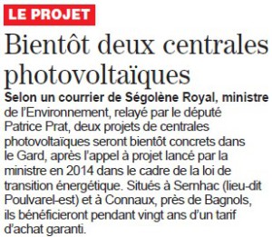 GARD Deux projets de centrales photovoltaïques retenus par Ségolène Royal