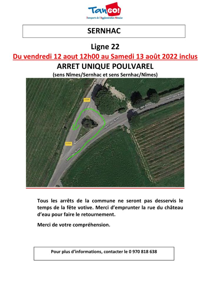 Catégorie : Actualités11 août 2022Navigation articlePrécédent Article précédent :Sécheresse : Restrictions très sévères sur les usages de l’eauSuivantArticle suivant :La POSTE : fermeture exceptionnelle samedi 13 aoûtArticles similairesInformation stationnement salle polyvalente samedi 6 & dimanche 7 décembre1 décembre 2025🚧 Circulation travaux D986L1 décembre 2025Passage des éboueurs pour présentation des calendriers 202613 novembre 2025Place disponible en miro-crèche les mercredis13 novembre 2025Avis de Consultation publique SNCF Rive droite du Rhône12 novembre 2025Enquête publique communale lieu-dit la Soubeyranne4 novembre 2025