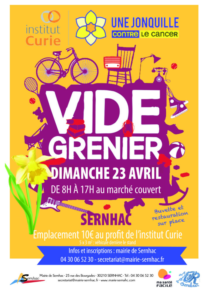 Vide grenier : Organisé en collaboration avec Ma Santé Facile, le Club L’Age D’Or de Sernhac et le CCAS mairie de Sernhac