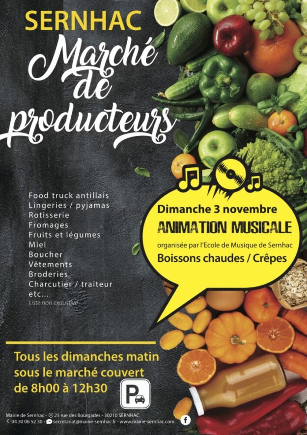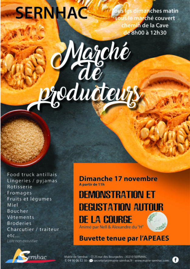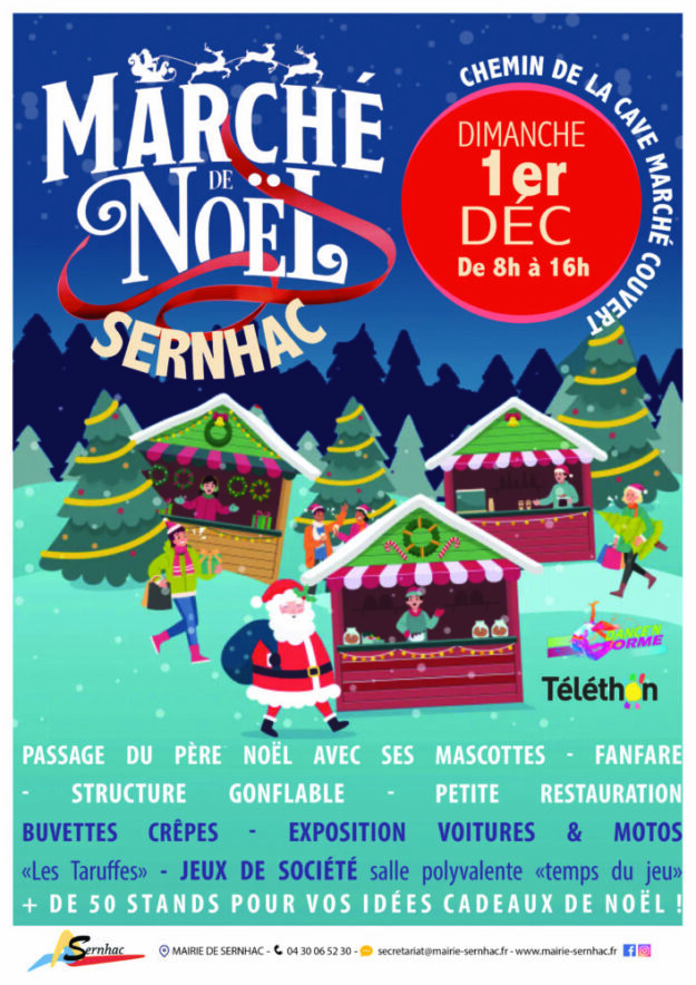 Dimanche 01.12.24 Chemin de la Cave 30210 SERNHAC (Gard) Emplacements disponibles (5 euros reversé au profit du Téléthon) pour les exposants et entrée gratuite pour les visiteurs Programme du Marché…