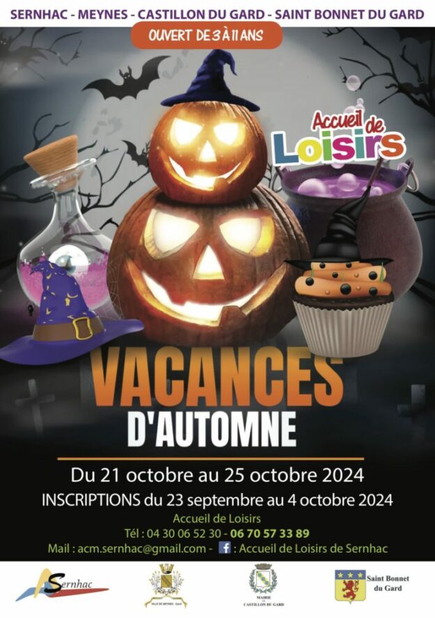 Vacances d’automne : ouvert la première semaine du 21 octobre 2024 au 25 octobre 2024 (inscription du 23 septembre au 04 octobre) Programme Vacances de Noël : fermé Vacances d’hiver…