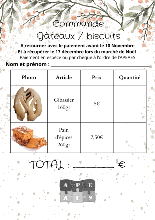 🍪Commande de gâteaux / biscuits pour l’association APEAES
