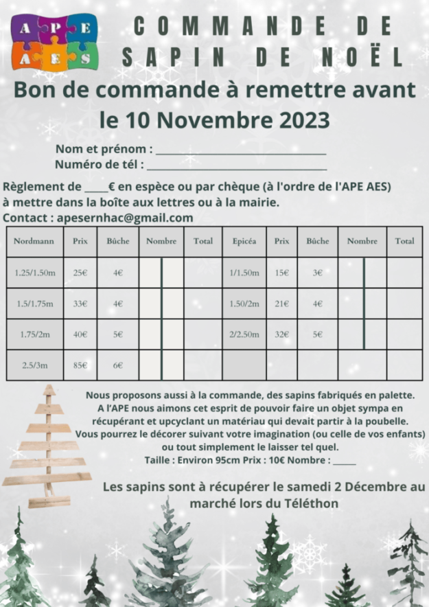 ℹ️ Date limite de commande : avant le 10 novembre 2023 👉Retrait : Samedi 02 décembre sur le parking de la salle polyvalente à l’occasion du Téléthon
