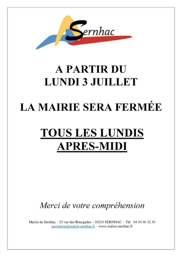 Du lundi 12 juin au vendredi 23 juin inclus de 8h30 à 16h30 le terminus se fera à Bezouce chemin de Sernhac