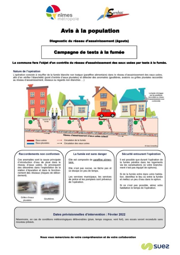 Communication – Contrôle du réseau d’assainissement des eaux usées par tests à la fumée