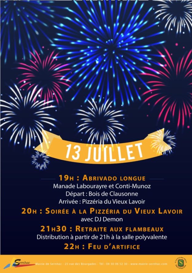13 JUILLET 2021 19H : ABRIVADO LONGUE Manade Labourayre et Conti-Munoz Départ : Bois de Clausonne Arrivée : Pizzéria du Vieux Lavoir 20H : SOIRÉE À LA PIZZÉRIA DU VIEUX…