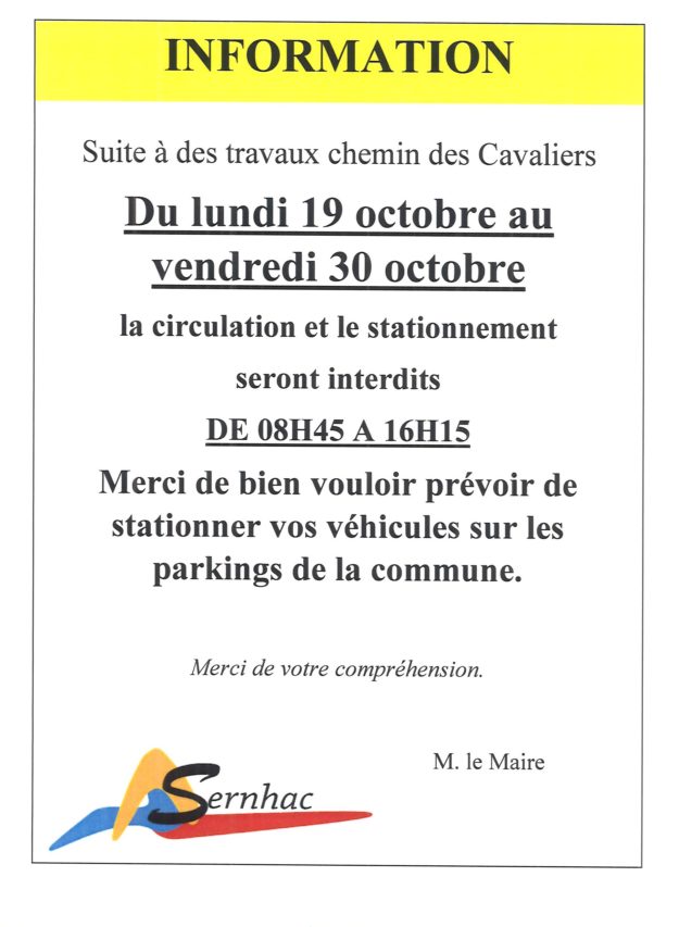 19 octobre– COMMUNICATION – Circulation chemin des Cavaliers