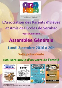 L’Association des Parents d’Elèves et des Amis de l’Ecole de Sernhac vous invite à son :