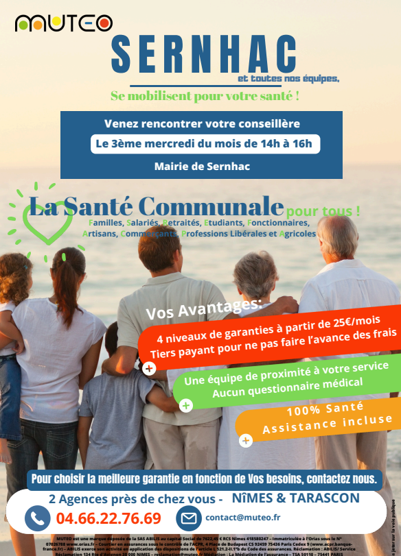 Le cabinet MUTEO vous propose des rendez-vous tout au long de l’année afin de vous conseiller au mieux et de vous assister dans vos démarches : Permanence le 3ème mercredi du mois en mairie de 14h à 16h00. (à domicile pour les personnes ne pouvant se déplacer)