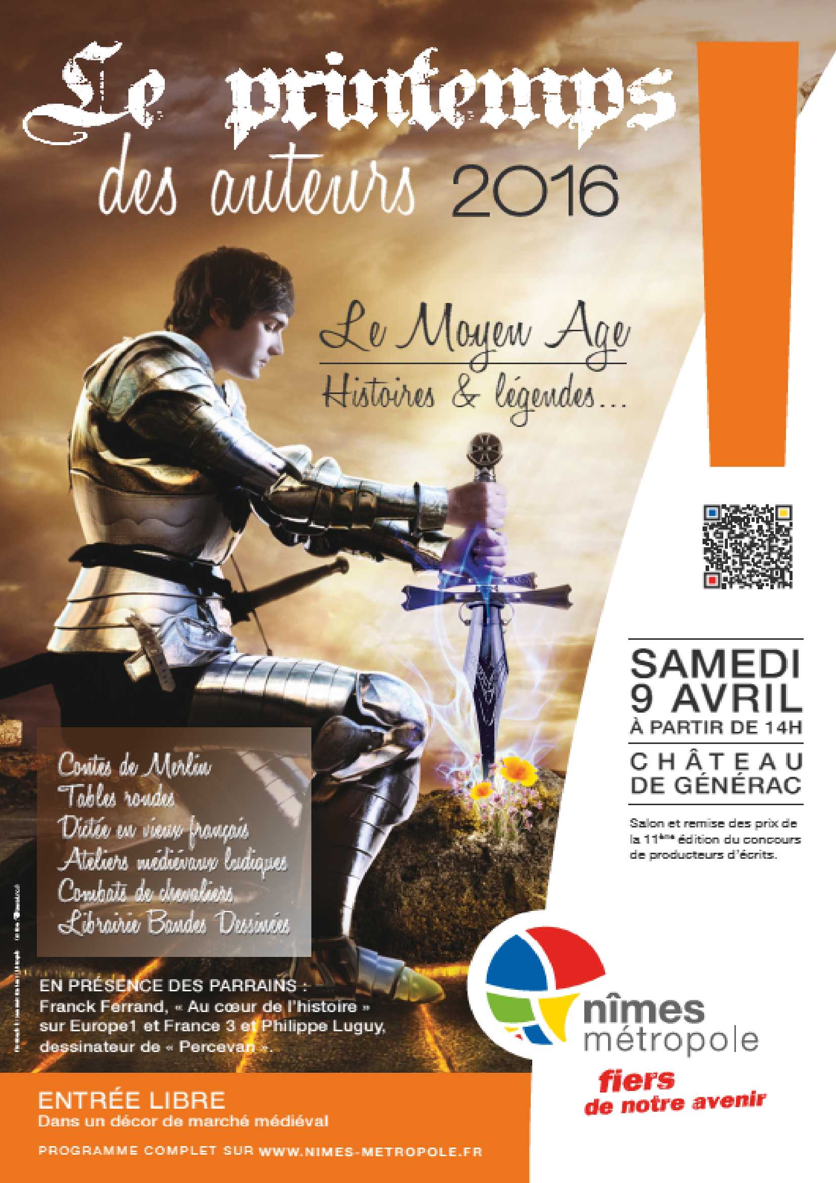 A 17h45, remise des prix du concours « Printemps des auteurs 2016 » sous la Coprésidence de Franck Ferrand et Philippe Luguy et animé de scénettes par nos troubadours et chevaliers.