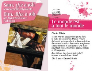 Le monde est à tout le monde : Martin Martin, découvre un pirate dans la malle de son grenier. Malgré l’heure du boulot qui approche, il se laisse entraîner dans une succession de mondes imaginaires.